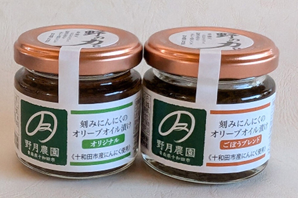 野菜炒めや豚汁、鍋料理、鶏唐揚げの下味、チャーハン、トーストなどに 刻みにんにくのオリーブオイル漬け「野の力」2種セット(オリジナル・ごぼうブレンド) 十和田市産にんにく使用 [ガーリック オリーブオイル 青森]