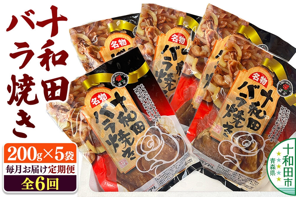 特製の甘辛ダレに漬け込んだ東北産の豚肉 【毎月定期便】十和田バラ焼き 200g×5パック 全6回 [豚肉 焼肉 ご当地グルメ]