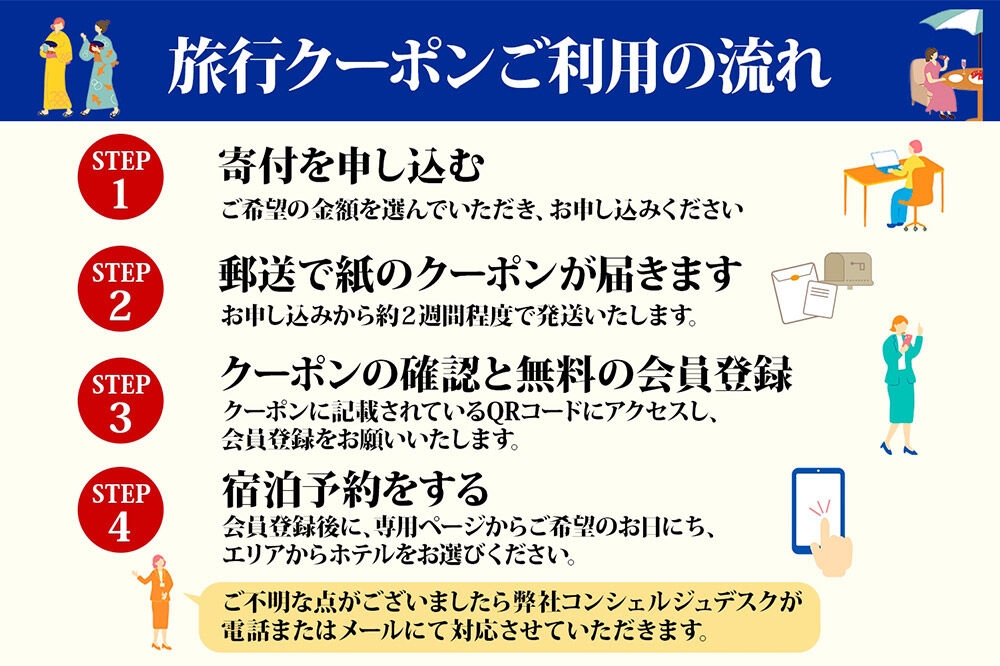※クーポン送付後、ご予約についてご不明な点がございましたら、JTAコンシェルジュデスクが電話またはメールにて対応させていただきます。