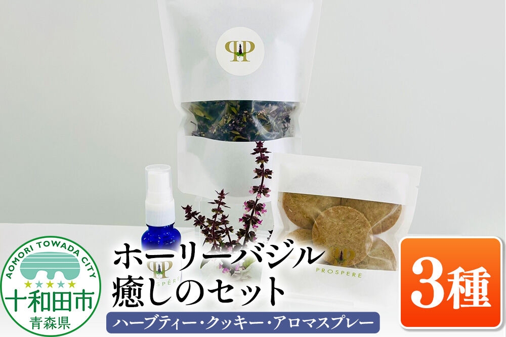 栽培期間中農薬不使用のホーリーバジル ホーリーバジル癒しの3種各1個セット(ハーブティー・クッキー・アロマスプレー)ノンカフェイン グルテンフリー [ハーブ]