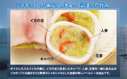 『いかずし』とは新鮮なするめいかをボイルしていかの胴体にキャベツなどの生野菜といか足を一緒に詰めた、まろやかな味の酢漬けです。いかと野菜の歯ごたえや、口に広がるまろやかな酸味がさわやかで、サラダ感覚でもお楽しみいただけます。地元では、マヨネーズやドレッシングをつけて召し上がる方も。手作りで仕上げた、郷土の味覚をぜひご賞味ください。 ■生産者の声 青森県下北半島では季節を問わず魅力的な味覚に出会えます。日本海と太平洋がぶつかり合い津軽海峡の荒海で育った魚は身の締まりが格別です。そのような海の幸をはじめ、大地の恵みをたっぷりと受けた山の幸も豊富な下北半島。 これからもマルモは、青森県の天然素材をはじめとした原料の鮮度に特別のこだわりを持ち、皆様に幸せと健康を運び続けて行く為に徹底した衛生管理のもと、新鮮な水産食品を造り続けてまいります。是非とも心温まる食の宝庫『うまいぞ下北半島』を合い言葉に、マルモの逸品をご用命ください。 ■注意事項/その他 賞味期限は、冷凍状態で保管した場合の期限となります。解凍後は冷蔵庫で保管し、5日以内を目安にお召し上がりください。 ※画像はイメージです。 ■むつ市で行っている製造加工工程:ボイル、皮むき、調味、野菜調味、野菜詰、袋詰、梱包