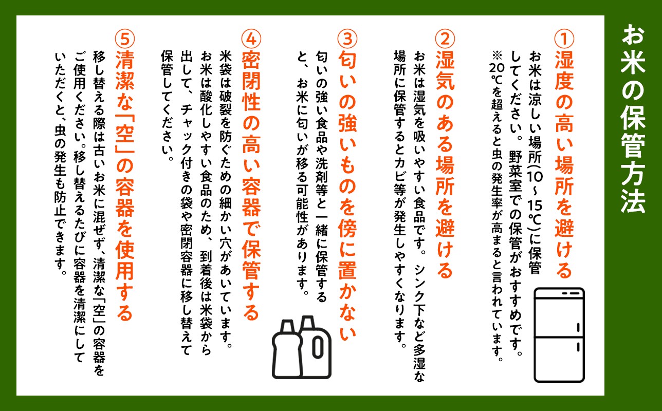 ※お米は生鮮食品ですので、到着後は涼しい場所(10~15℃)で保管してください。
