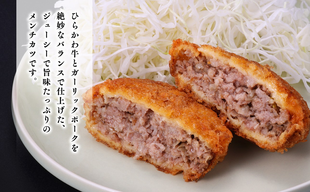 そんな地元に根ざした和牛の平川市産の黒毛和牛 ひらかわ牛(津軽谷川牛)と県特産ガーリックポークを原材料とした、完全手作りのハンバーグとメンチカツを一度に味わえる贅沢な2品セットです。