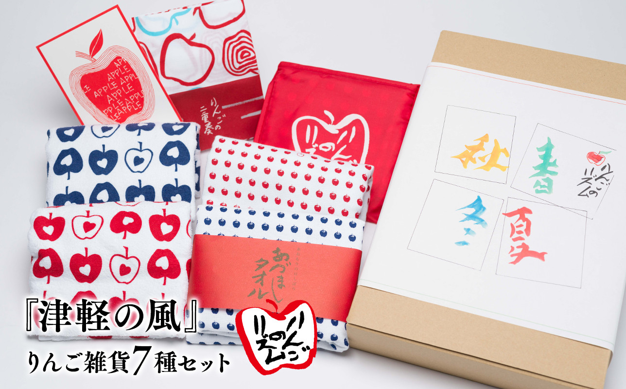『津軽の風』りんご雑貨 7種セット 日用品 タオル 折り畳み エコバッグ サブバッグ ポストカード カード 雑貨 日常使い 豆絞り 青森県 平川市