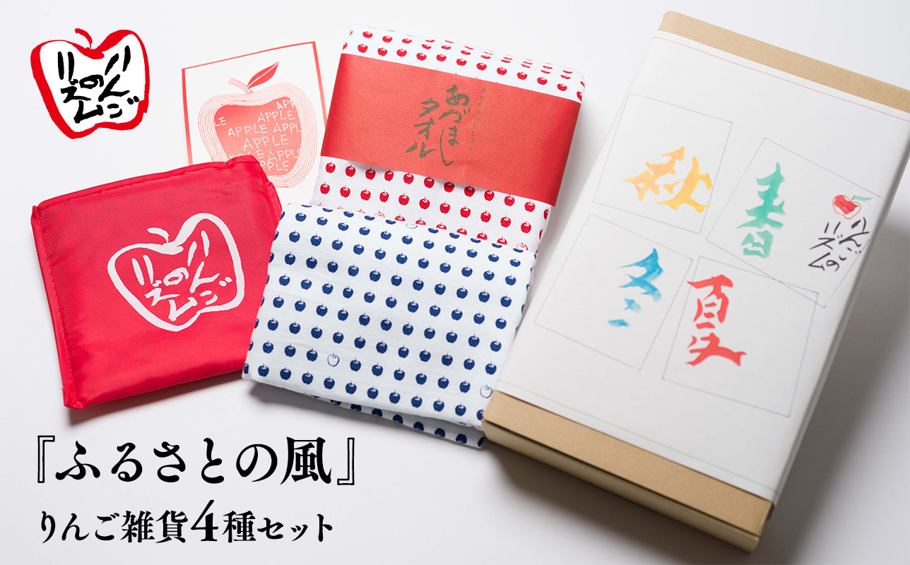 『ふるさとの風』りんご雑貨 4種セット 日用品 タオル 折り畳み エコバッグ サブバッグ ポストカード カード 雑貨 日常使い 豆絞り 青森県 平川市