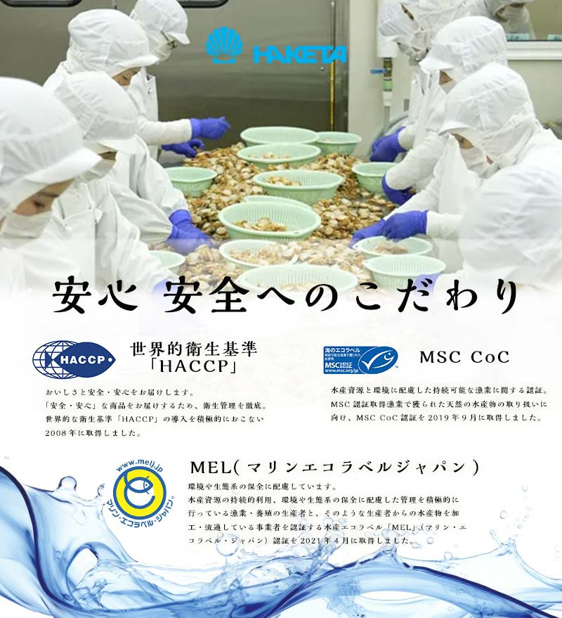 青森県陸奥湾の栄養豊富な海で生育されたホタテなどを高度な衛生管理システムのもと製造し、高品質な商品を全国のお客様にお届けしています。