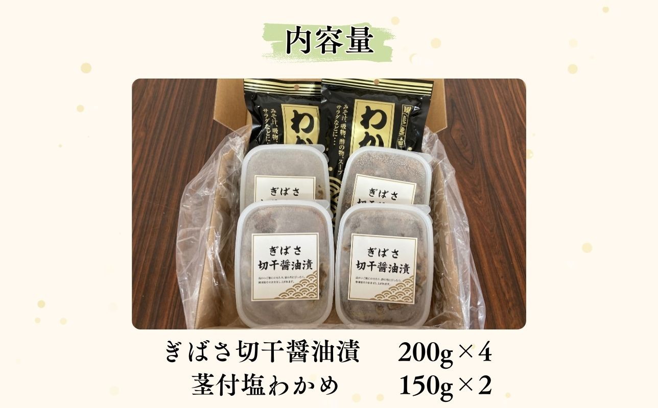 青森県深浦産ぎばさに、北海道産昆布と食感の良い切干大根を合わせ、松前漬風の醤油味で漬け込みました。