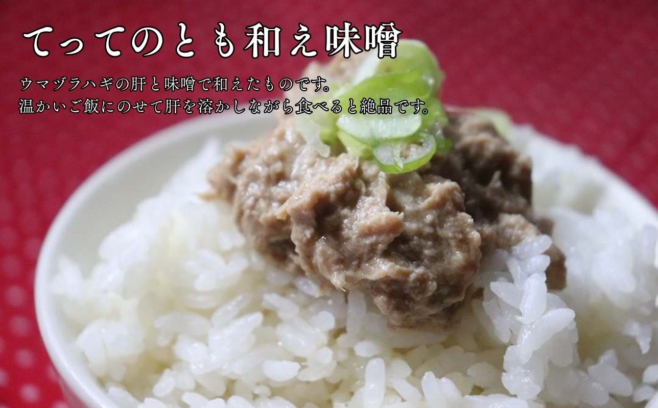 | 容量 | ウマヅラハギ加工品2種詰合わせセット ・てってのとも和え味噌80g×2 ・てっての塩辛100g×2 |