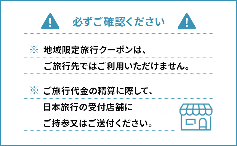 ■ご旅行代金精算に際して、当クーポンを受付店舗までご持参又はご送付いただくことが必要です。ご送付の場合、封筒のご準備及び送料等は、お客様のご負担となります。
