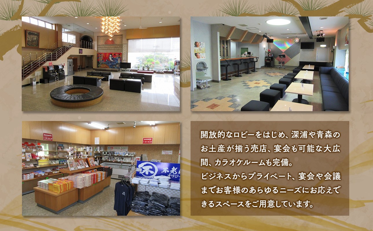 白神山地の麓、黄金崎の絶景に佇む一軒宿で、日帰り入浴・宿泊・お食事などに幅広く利用可能です(※売店利用不可)。