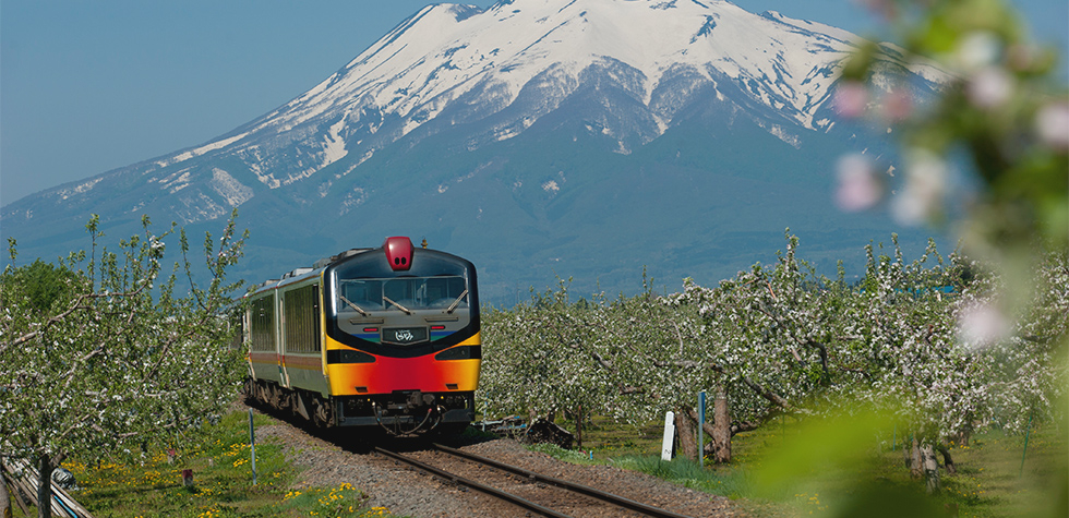 現在、世界一の生産量を誇るりんごの品種「ふじ」は、津軽平野のほぼ中央に位置する藤崎町で生まれたりんごです。昭和13年、藤崎町に「農林省園芸試験場東北支場」が創設され、寒冷地の園芸作物に関する広範な研究が行われ、数々の目覚ましい成果を生み出しました。その最大の成果が「ふじ」の育成です。昭和14年に「国光」を母、「デリシャス」を父として交配が行われ、昭和26年に初めて実を付けました。昭和37年、日本を代表する富士山と藤崎町の一字をとって「ふじ」と命名されました。