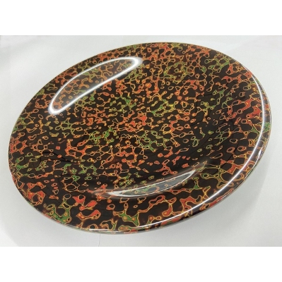 唐塗:津軽塗の定番で、多く作られています。複雑な斑点模様は唐塗独特な模様として多くの方から愛用されております。