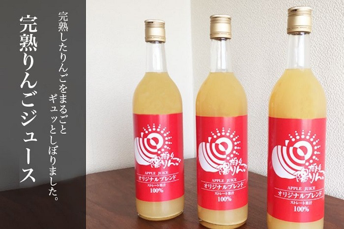 完熟したもぎ実りんごを当農園独自の比率でブレンドしたスッキリとした甘さに仕上げた、通年、飲み飽きないジュースです。