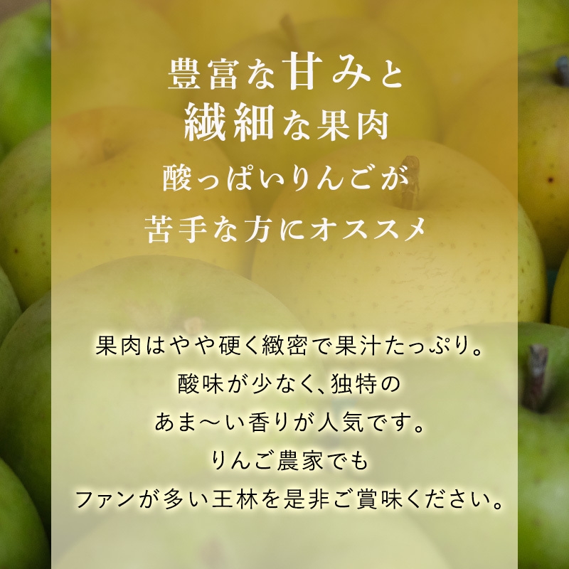 | 容量 | 【11月発送】糖度13度以上 訳あり王林 約10kg(20~56玉程度) ※色むら、変形、擦れ、サビ、小キズ、つる割れ等含む。 ※玉数の指定はできません。 ※商品名に記載されております重量はあくまでも目安です。りんごの品種や大きさによって、重量が満たない場合もございますので、予めご了承ください。 |
