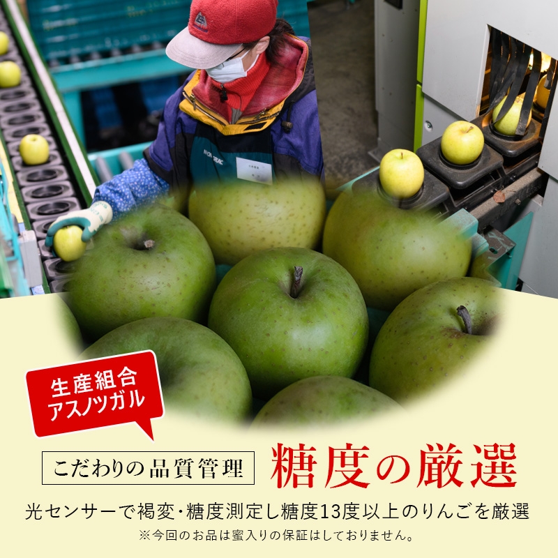 1玉ずつ光センサーで褐変・糖度測定し、糖度13度以上のりんごを選んで皆様にお届けします。