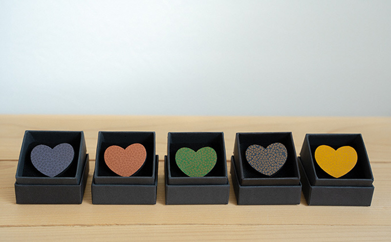 表面を津軽塗で仕上げた、「ちょっぴりアツイ」ブローチです。