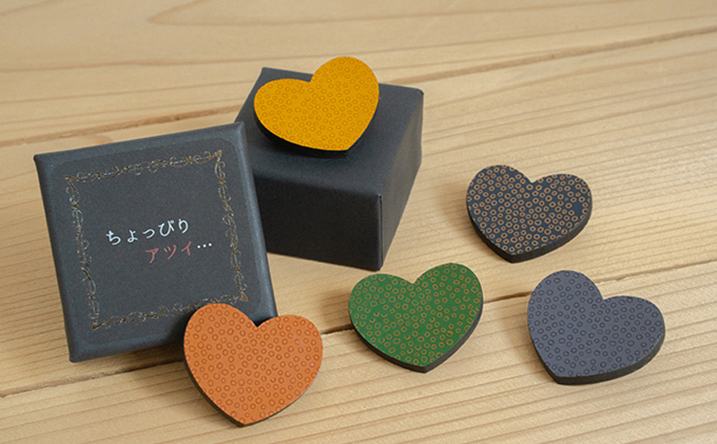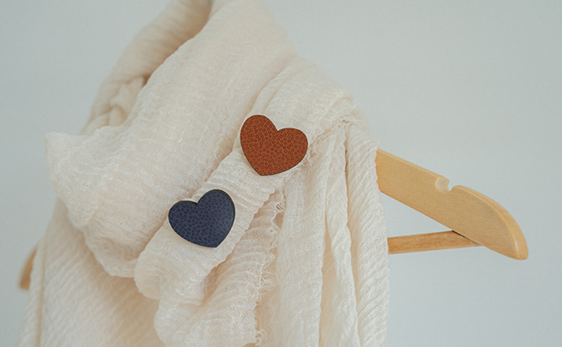 表面を津軽塗で仕上げた、「ちょっぴりアツイ」ブローチです。