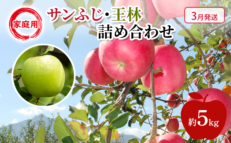 [№5554-0222]りんご 【 3月発送 】 糖度13度~家庭用 サンふじ ・ 王林 詰め合わせ 約 5kg