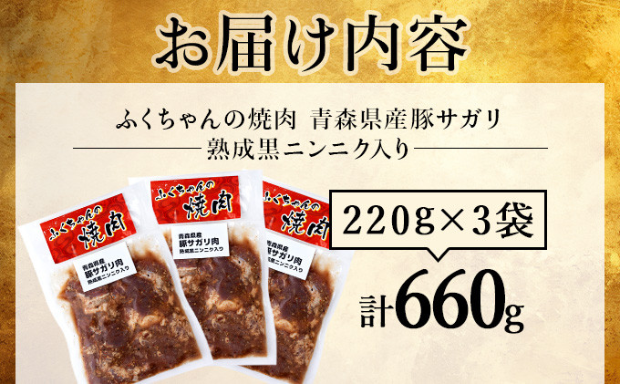 お酒大好きふくちゃん考案最強おつまみ!やわらか食感がクセに! ふくちゃんの焼肉 青森県産豚サガリ 熟成黒ニンニク入り 3袋セット【豚 豚肉 肉 焼肉 BBQ 冷凍 小分け パック 手軽 簡単 タレ 味付き 青森県 七戸町】【02402-0287】