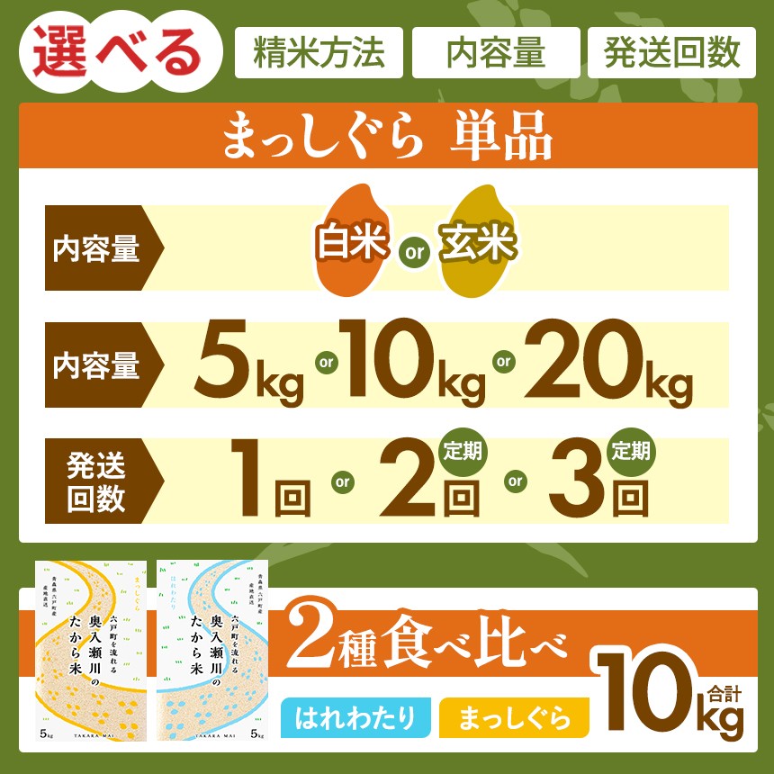 【 選べる 種類 ・ 容量 ・ 配送回数 】まっしぐら 白米 or 玄…