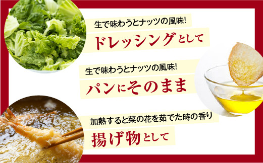 手間ひまかけて丁寧に、自然濾過で仕上げた風味豊かな菜種油は、そのままパンにつけても、ドレッシングとしても美味しく味わえます。