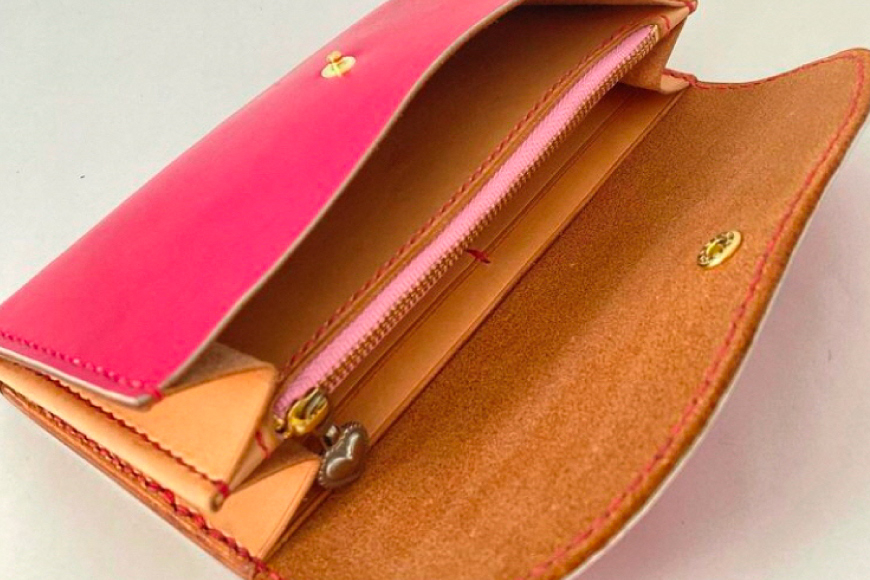 ・財布は長財布か折り財布を選ぶことができます。お申込書を送付いたしますので、どちらか選択していただきます。