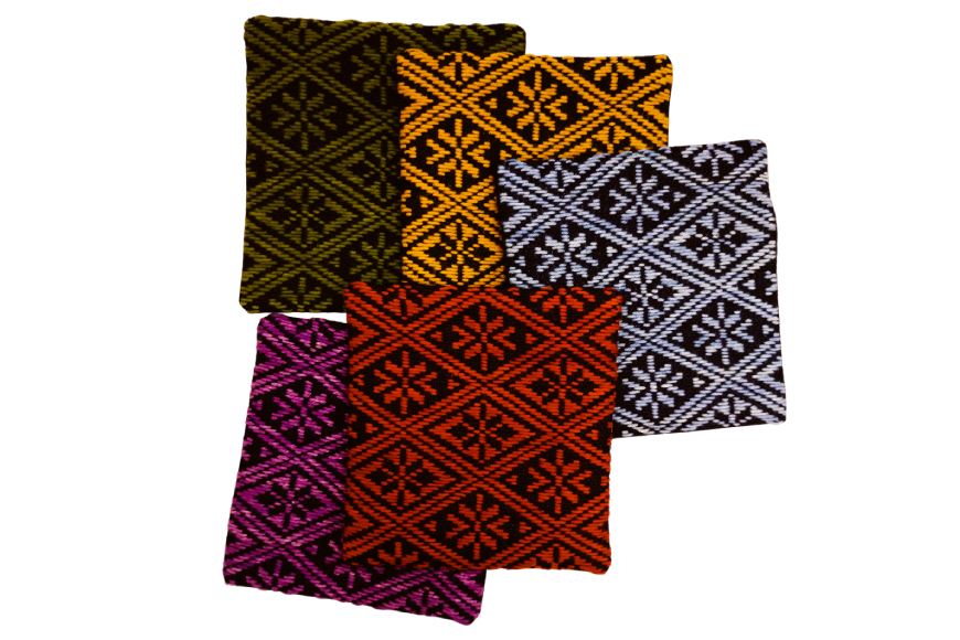 青森県で南部菱刺しで伝統工芸士として登録されているうちの一人が、便利になったこの時代に、少しずつ形を変えながらも温もりある手仕事として作成した南部菱刺しを施したコースター5枚セット。