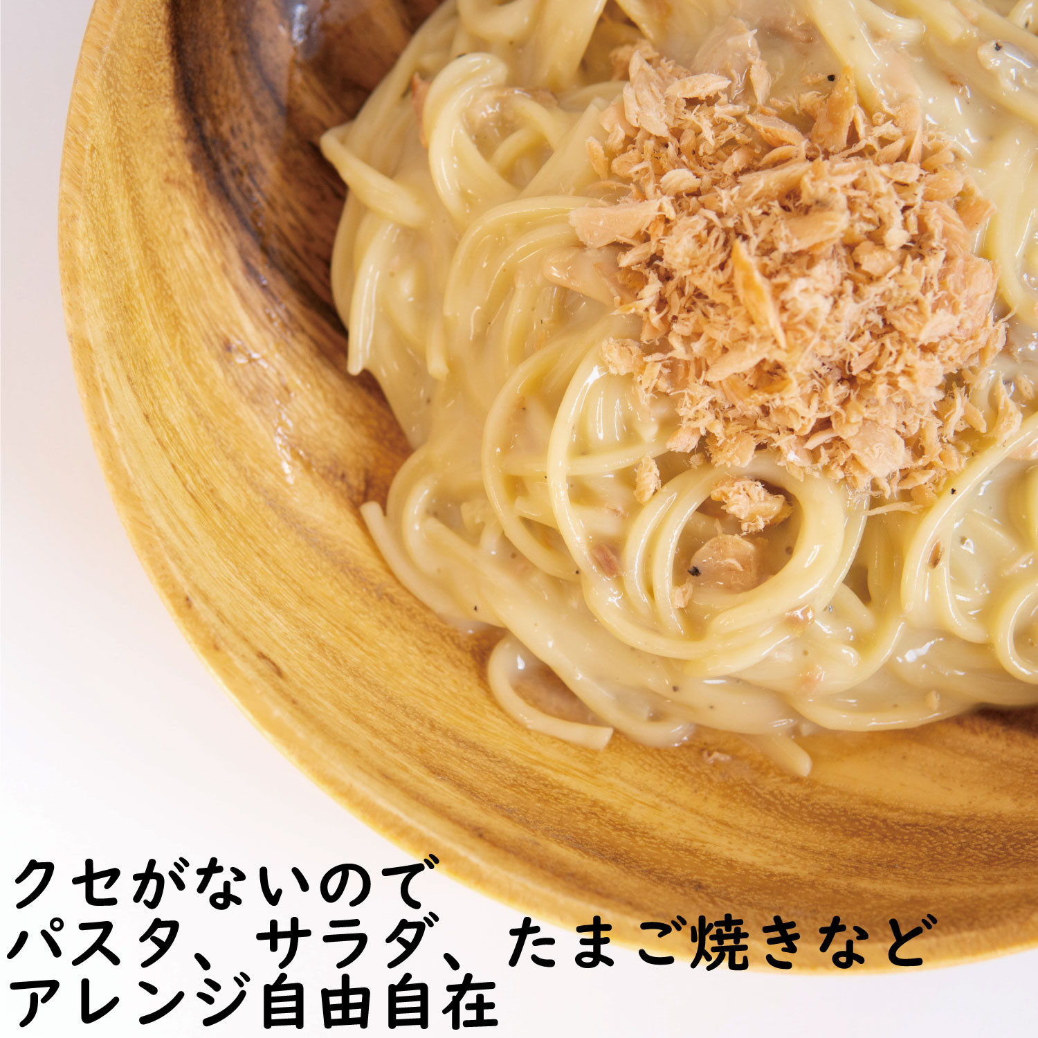 塩のみで味付けしており、優しい味わいで、ご飯のおともにはもちろん、パスタやサラダなど、アレンジも自由自在です。