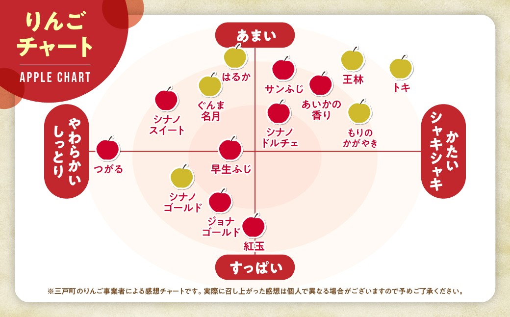 甘味が強く、酸味は少なめで、蜜が入りやすいジューシーなりんごです。