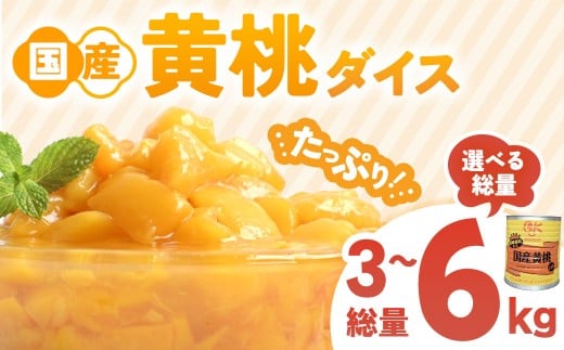 あっさり系の甘さのシラップ漬けのダイスカット缶詰タイプ 国産黄桃ダイス1号缶 桃 国産 皮なし シラップ シロップ 大容量 甘い フルーツ 果物 黄桃 デザート もも 桃缶 缶 缶詰め フルーツ缶 青森県 三戸町