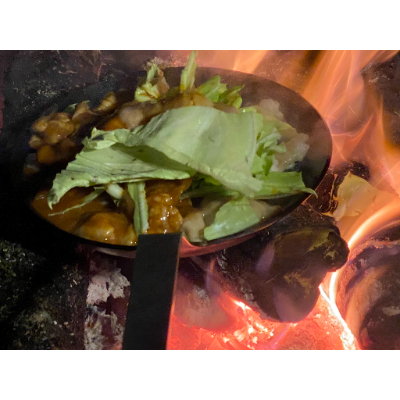 熱変形が少ないため、直火調理に強く、薪や炭の上に直接置いて調理する武骨なアウトドアスタイルにも向いています。