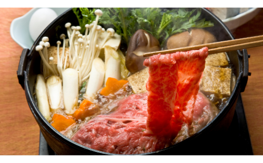 きめ細かなサシと上質な脂が特徴で、割下とともにじっくり煮込むと旨みが溶け合い、贅沢な味わいに。