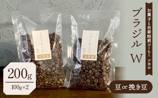 ソカロブレンド100g + ブラジル W 100g 豆または挽き豆 【お菓…