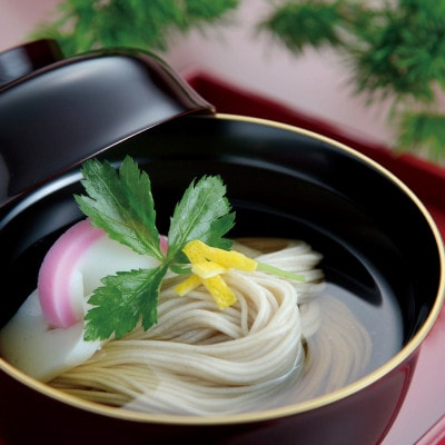 国内産のそばの実を低温貯蔵後、風味をそこなわないように石臼で製粉し、殻をむいたそばの実をまるごと引き込んだ挽きぐるみのそば粉に小麦粉を練りこんでつくりあげたそうめん仕立ての「そば素麺」です。