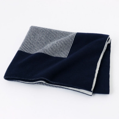 額縁ストライプブランケット (ネイビー×オフホワイト)【1521317】