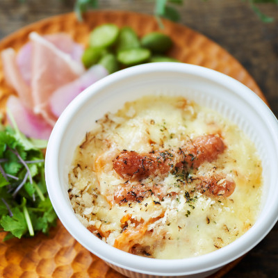 もちもちのパスタと自家製トマトソースの絡みが絶妙にマッチし、ソースの酸味と旨み、ケチャップの甘みのバランスがとれた昔懐かしのナポリタンに、岩手山麓でとれた牛乳をふんだんに使用した濃厚な自家製ホワイトソースを組み合わせ、さらにチーズとウインナーをトッピング。ナポリタンだけ、ホワイトソースだけ、絡ませて一緒に…と三度おいしい一品です。