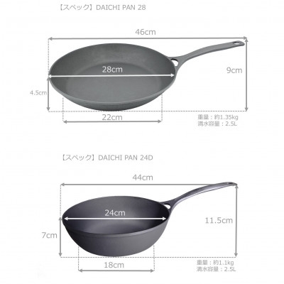 | 容量 | ■お礼品の内容について ・DAICHI PAN 22+26+28+24D[1セット(計4個)] 製造地:岩手県北上市 ■原材料・成分 鋳鉄 |