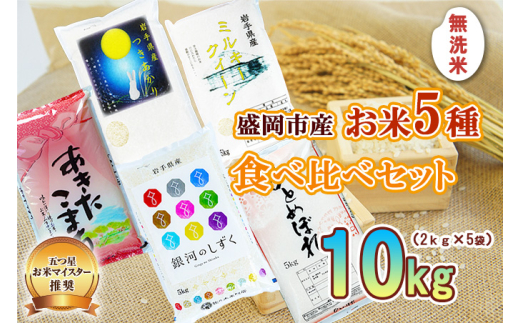 盛岡市産 無洗米 5種食べ比べ【2kg×5袋】