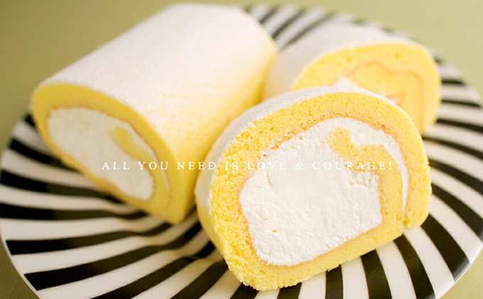 ロール生地は岩手県紫波産の卵を使用し、濃い豆乳を入れております。