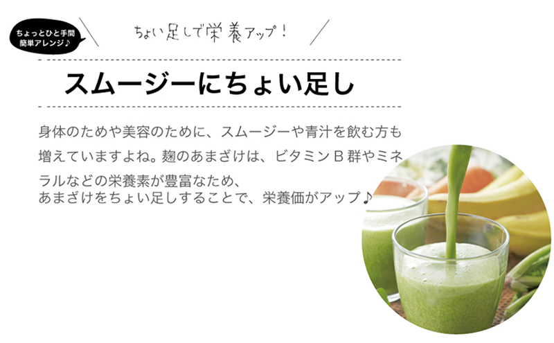 甘酒には、健康と美容に嬉しいブドウ糖・天然のアミノ酸・ビタミンなど栄養素がたっぷり詰まっています。