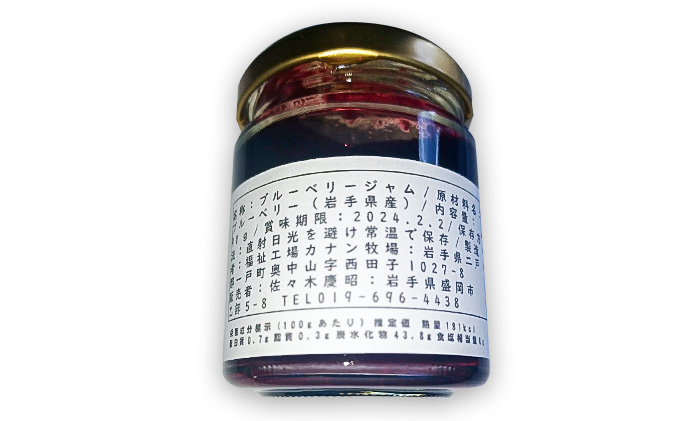 《岩手県盛岡市 佐々木果樹園 乙部角屋 で収穫されたブルーベリーを100%使用したジャムをご賞味ください》