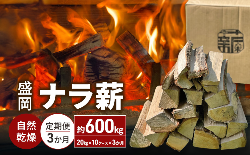 自然乾燥 盛岡ナラ薪 定期便 計600kg(20kg×10ケース×3か月)薪 まき キャンプ 薪ストーブ 焚火 たき火 アウトドア グッズ サウナ 人気 おすすめ 岩手 岩手県 定期 3回