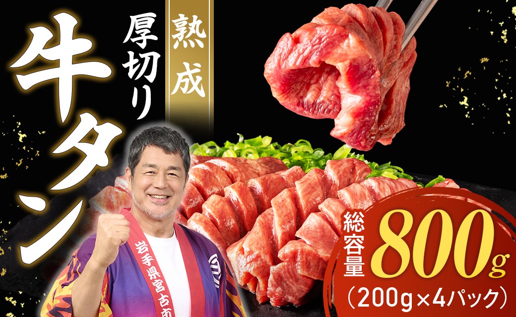 三陸宮古の塩を使用した熟成牛タンスライス味付け 800g(200g×4p)【1547211】