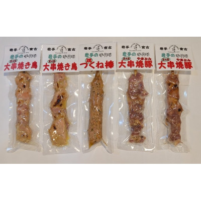 おつまみ大串3種5本セット(焼鳥2本、焼豚2本、鶏つくね棒1本)【1613511】