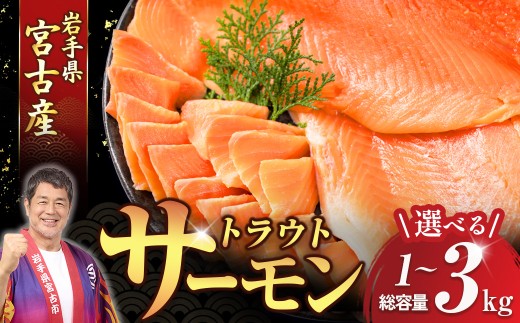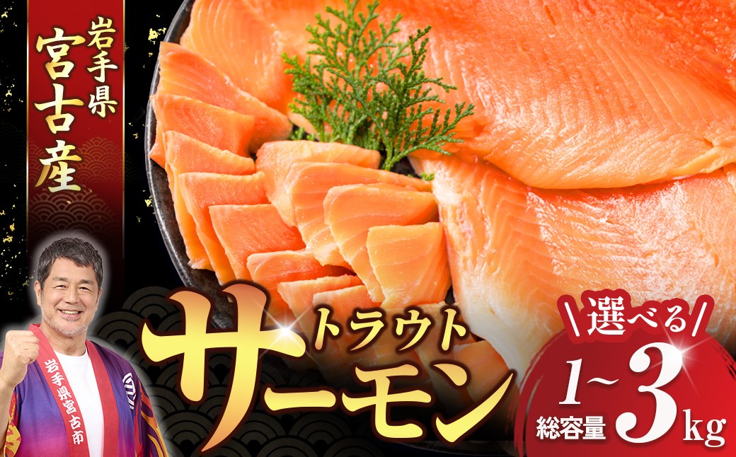 | 容量 | ■お礼品の内容について ・トラウトサーモン フィーレ・フィレ 1kg〜3kg 原産地:岩手県宮古市/加工地:岩手県宮古市 ■原材料・成分 トラウトサーモン(岩手県宮古市) |
