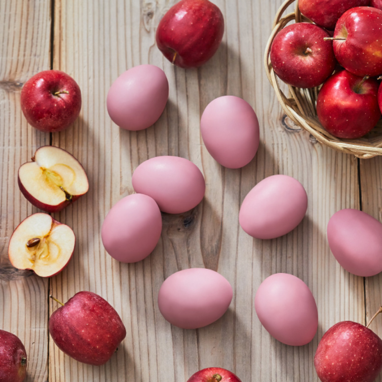 黄味餡の中にりんごの果肉が入った、りんご風味の美味しいかもめの玉子が出来ました。香り豊かでさわやかな味わいを、ぜひお楽しみください。