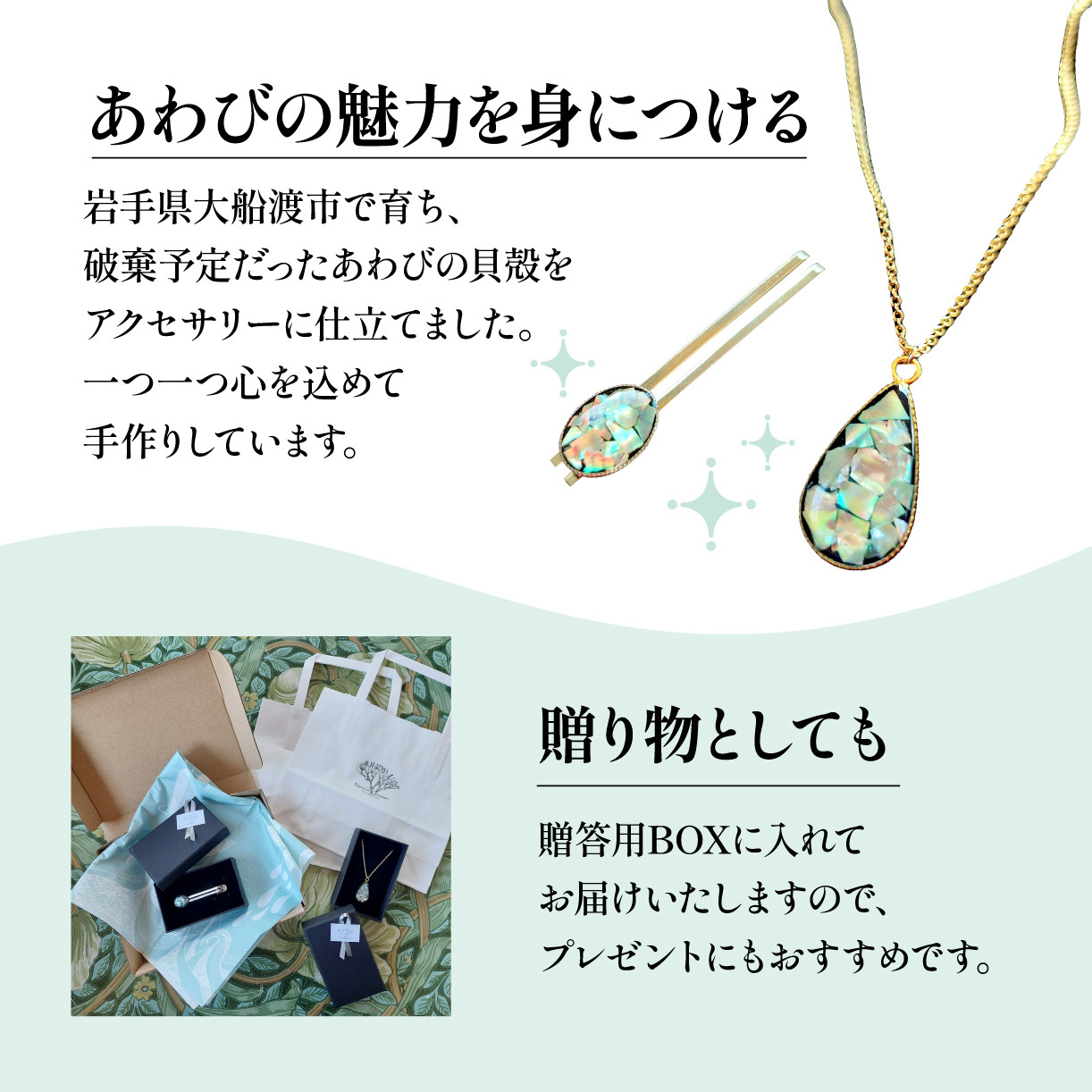 【大船渡産アワビの貝殻アクセサリー「ペンダント&ネクタイピンセット」】