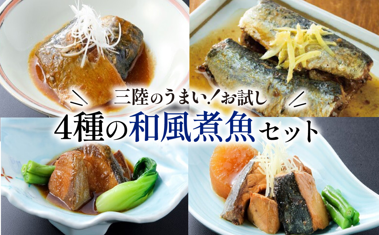 定番の和食をいつでも手軽に 和風煮魚詰合せ 4種×2パック 食べ比べ 海鮮 魚貝類 魚介類 ふかひれ サバ味噌 さんま ぶり大根 鰤 ぶり 鯖 さば スープ 惣菜 惣菜レトルト 常備食 常温保存 防災 保存食 ローリングストック 電子レンジ 簡単調理 手軽 岩手県 大船渡市