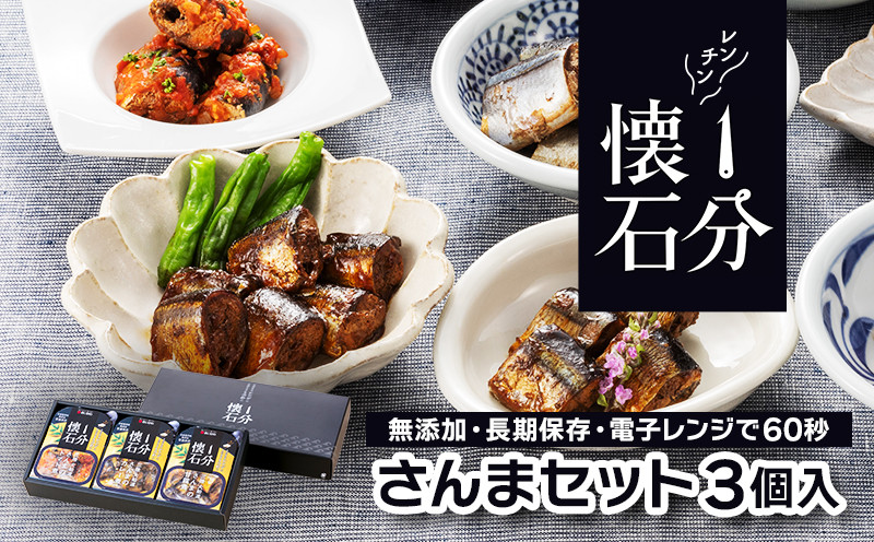 すぐに食べられる! 【常温保存可能】 1分懐石 3個入 甘露煮 トマト煮 カレー煮 さんま 秋刀魚 数量限定 さかな おさかな 魚 サンマ 秋刀魚 FISH ごはん 夕飯 おかず おつまみ 晩酌 米 丼 海産物 海鮮 魚介 魚介類 大船渡 三陸 岩手県 国産