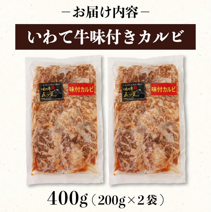 岩手牛のカルビをお届け! いわて牛 味付きカルビ400g 肉 にく カルビ お肉 おにく 味付き 味付け 加工品 惣菜 そうざい お惣菜 バーベキュー BBQ 簡単 お手軽 ごはん 夕飯 おかず サラダ 大船渡 三陸 岩手県 国産